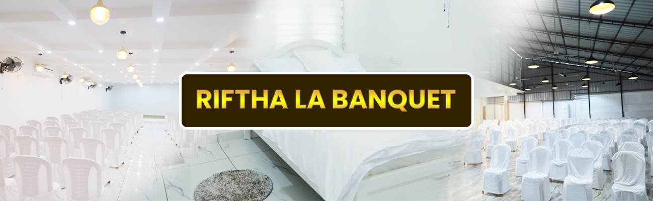 In the heart of Kannur, close to Thana, find opulent wedding halls and cozy accommodations. Experience a venue that expertly blends futuristic style with contemporary amenities at Riftha La Banquet, Kannur's finest luxury event management establishment. Enter a world of luxury as you are met by breathtaking architecture and a futuristic atmosphere at Riftha La Banquet. Our hall is beautifully designed to create a luxurious and advanced environment for all of your special occasions. Riftha La Banquet offers lodging options for the convenience of the guests in addition to a space for holding wedding ceremonies and other events. In order to accommodate various events, including birthday parties and wedding ceremonies and receptions, our halls typically feature multiple event spaces. Being the most reasonably priced auditorium in Kannur, Riftha La Banquet takes pride in providing excellent facilities and services at a reasonable cost. For individuals or groups in need of a place to stay for a short period of time, from one day to several weeks, we also have daily rental rooms with featured amenities. Experience convenience and comfort in our daily rental rooms at Riftha La Banquet. For brief visits, our rooms provides a warm haven that feels like home away from home and are styled in classy and vintage theme.