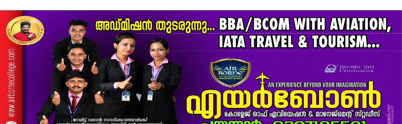 After the completion of primary education, the next step is to pursue professional courses with the possibility of employment . It is a dream come true to get a job. Airborne College, number one in Kerala, is a way to raise the hopes and to say good bye to the unique job opportunities in front of the young generation. Airborne college is opening up to a vast world of professionalism by offering university recognised degree courses and world recognised IATA certified diploma courses with outstanding services. Airborne was able to overcome many challenges with the help of power, teaching style and training. After 11 years of growth and success, there are about 400 students, 40 teachers and One branch in Kannur. In 2009, we started as a small institution with the potential of aviation tourism. Our capabilities and hard work helped us to make a drastic change and also helped us to become very popular among the people. Not only on education but we also focus on the extra curricular activities to identify and support the hidden talents of the students. With the presence of Sajitha Betti in 2017 and Santhosh Kizhattur and Sibi Thomas in 2018, Airborne could capture the attention of community. On the day of decade celebration Sri. Jagadish, famous Malayalam actor, became the Brand Ambassador of our College. The college day in 2020 was splendid by of the presence of Sri. Suraj Venjaramoodu. The future of the Airborne is changing for the better. Airborne promises you to secure your future and make your dreams come true.